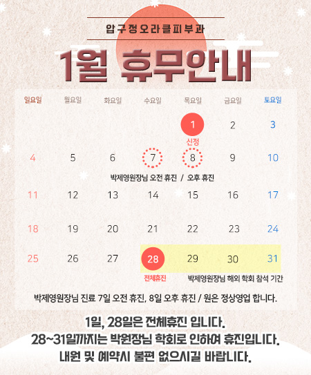 점     심PM 01:00 - PM 02:00    *일요일 / 공휴일 휴진