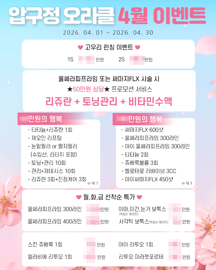 지하철 3호선 압구정역 3번 출구 뒷편 파리바게트 골목 10m 직진